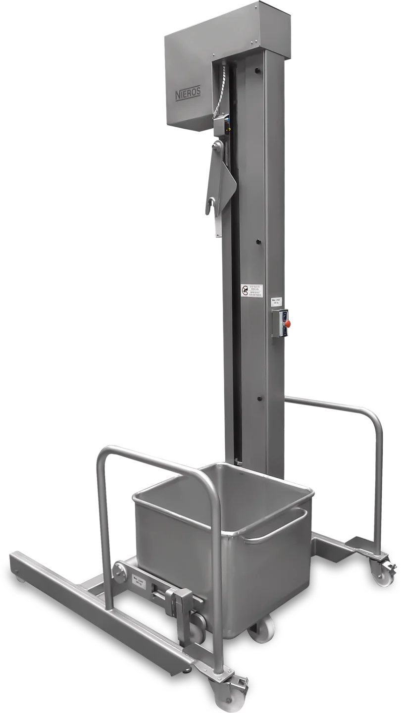 Nieros tarjoaa erilaisia kiinteitä ja liikuteltavia nostolaitteita 200 ja 300 litran allasvaunuille sekä erilaisille säiliöille, laatikoille tai tynnyreille. Saatavilla on sähköllä toimivia pylväsmallisia nostimia, joilla on mahdollista nostaa jopa kolmen metrin korkeuteen. Matalampiin tuotantotiloihin tai pienempiin nostokorkeuksiin on saatavilla hydraulisesti tai pneumaattisesti toimivia nostolaitteita. Tarvittaessa nostolaitteita on mahdollista räätälöidä asiakkaan tarpeisiin soveltuvaksi.