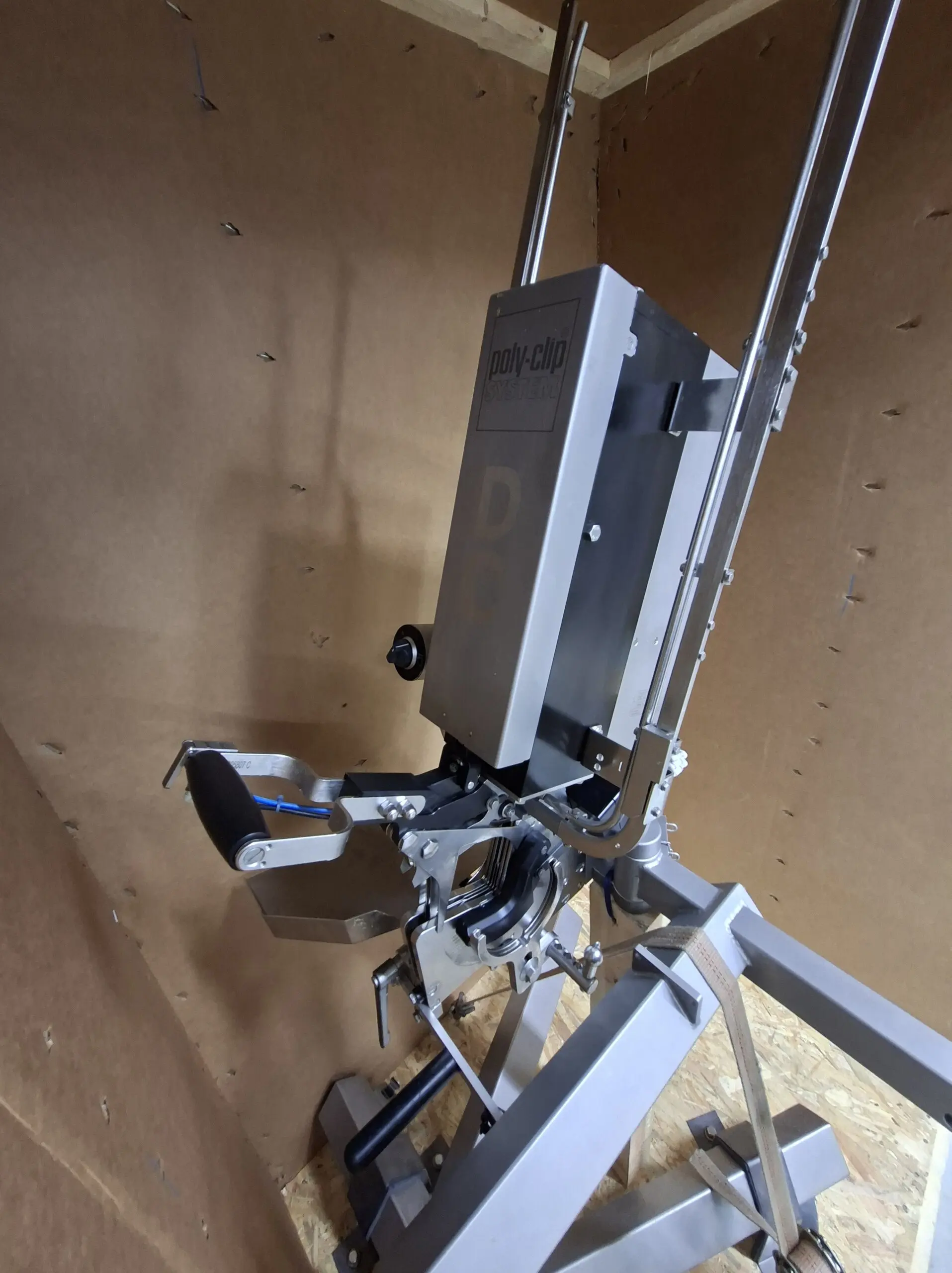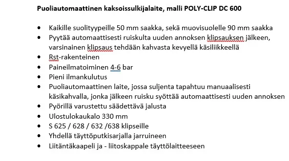 Poly-clip Systemin puoliautomaattinen sulkijalaite, malli DC 600. Asiakkaalta palautunut, vähän käytetty kone.